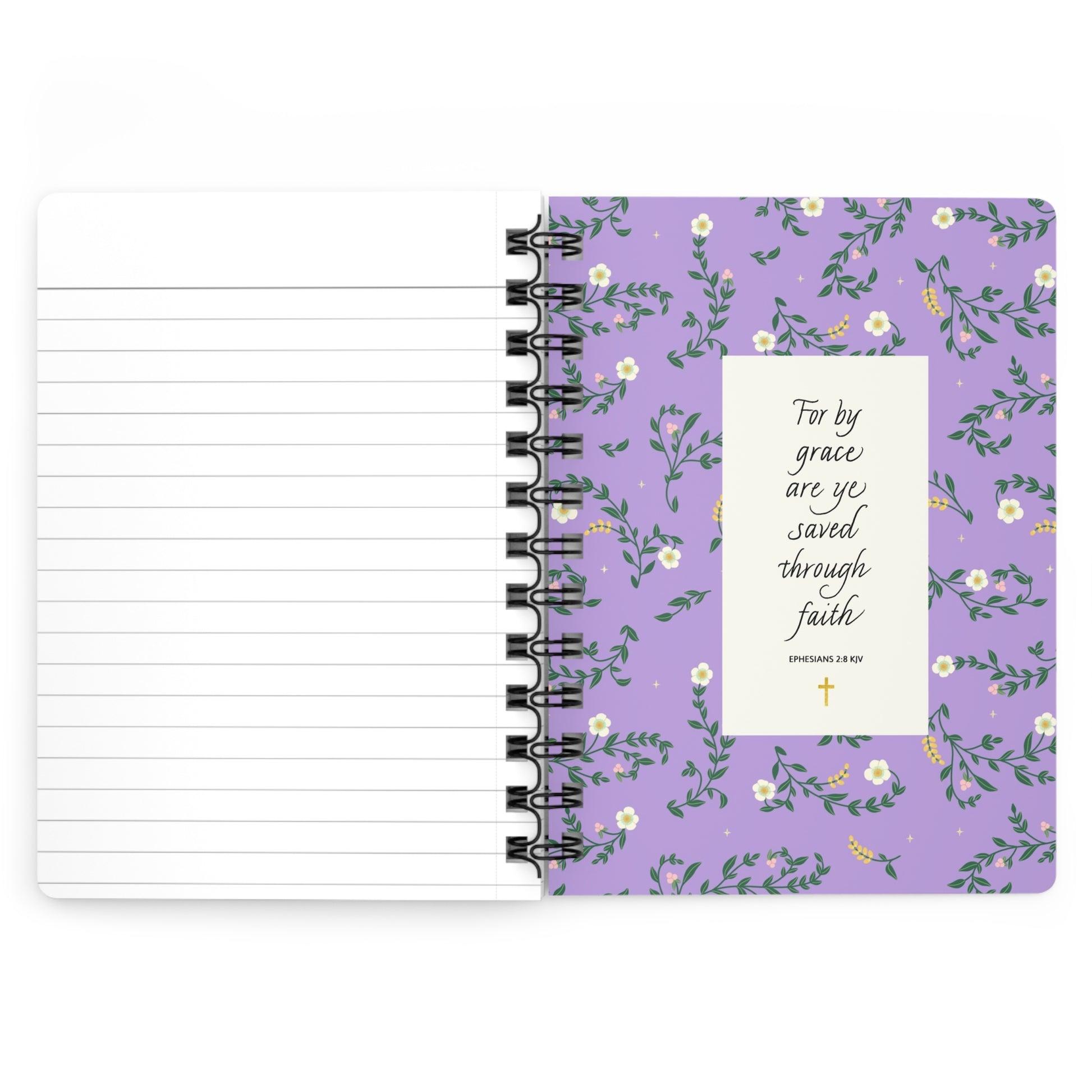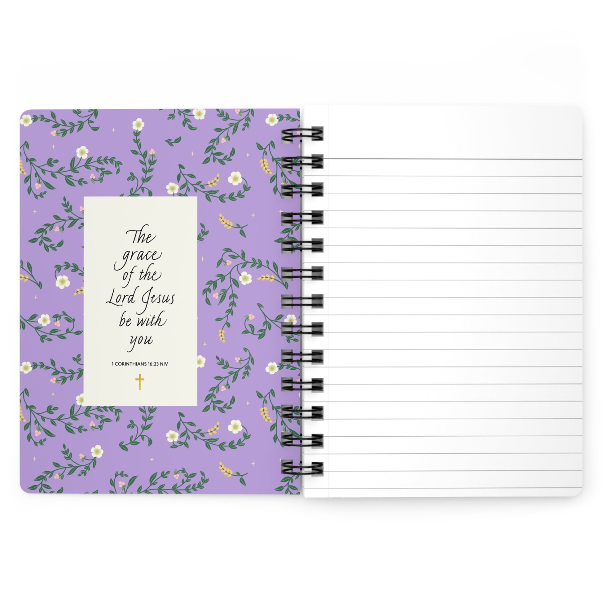 Let your faith and creativity blossom with this beautifully designed Christian spiral notebook, featuring inspiring reminders of God’s grace. The delicate florals and hand lettered text and scriptures on the front and inside covers are by Deidre Marie, Artist. Crafted in the United States, this 5 x 7-inch spiral bound journal features a thick, glossy, full-color laminated cover—a high-quality finish that’s far more durable than ordinary paper covers. The 150 lined, removable pages provide ample space for your thoughts, prayers, and Scripture reflections, while the front, back, and inside covers are printed in full color for a cohesive, spiritually artful look.